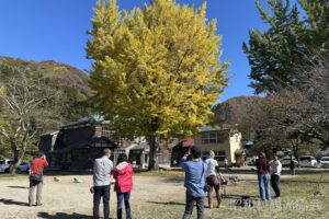 落ち葉によって作られる黄色のじゅうたんも、見る人を魅了します。